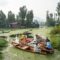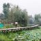 Wooden Walkway Elevated walkways wind over the lotus leaves, connecting groups of buildings.