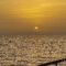 Sunrise through the Seahaze I get up early in the morning – and find a yoga mat on the prow for some stretching as the sun comes up.