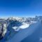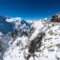 Jagged Peaks and Climbers We can see the tracks of the climbers who are traversing the snow before dropping down over the ridge.
