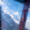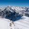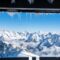 View from the Cabin Via the curved perspex of the gondola car, blue sky and a first glimpse of snow appear.
