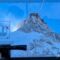 View Interrupted Through the front of the cabin, we can see the top station on Aiguille du Midi.