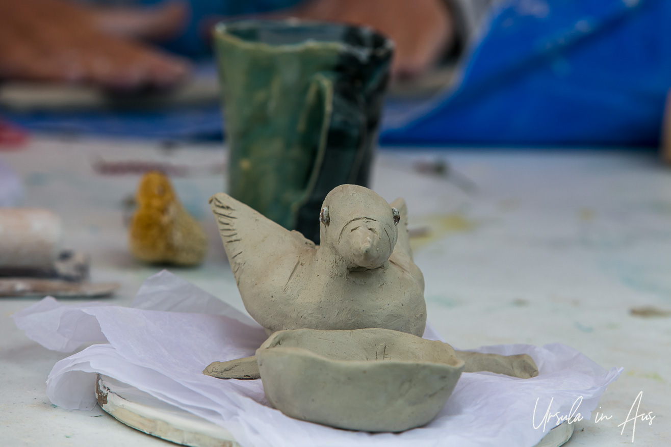 Art therapist Bella Insch of Pambula’s Brush with Clay Studio ran a workshop on hand-building clay. I popped in regularly to watch the objects take shape.