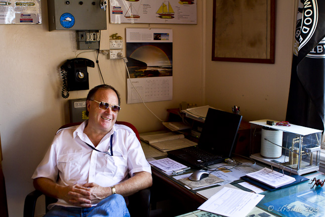 Our pilot Andy sits at ease in the weather station as he talks about the island history.