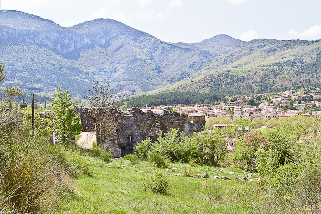 The route from Granes to Quillan follows the GR (“GR®” Grandes Randonnées / Long Distance Footpaths) along a well known path that used to be an important link and means of communication between the small Pyreneen hamlets. We traverse the high saddle of the Col des Trois Quilles before arriving in Quillan.