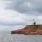 The 245 million-year-old red mudstone and sandstone cliffs around Otter Cove are ridged and pockmarked.