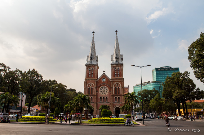 Our shuttle drop-off and pick-up point was outside the amazing Nhà Thờ Đức Bà, officially called the Cathedral Basilica of Our Lady of The Immaculate Conception. Built between 1863 and 1880 to service a growing Roman Catholic community in Saigon, all the materials used in its construction were imported from France. The two 58 metre (190 ft) bell towers were added in 1895.