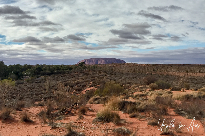 The hot air sings, the clouds roll, and Uluru stands out on the horizon almost 25 kilometres (15 miles) away from the Imalung Lookout in Yulara, Northern Territory. Even at this distance, it is thrilling! (iPhone6)