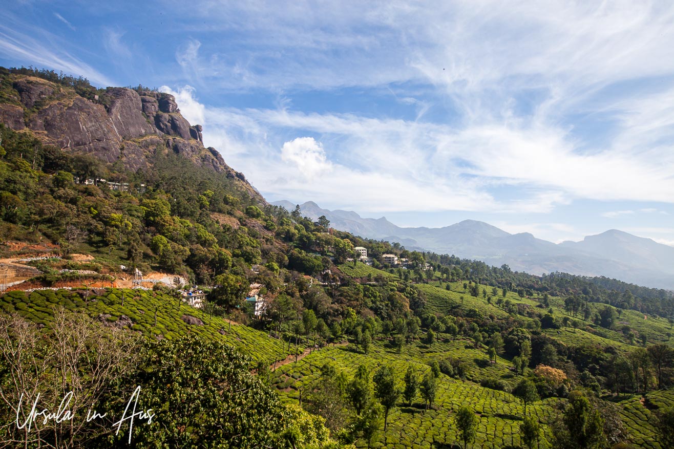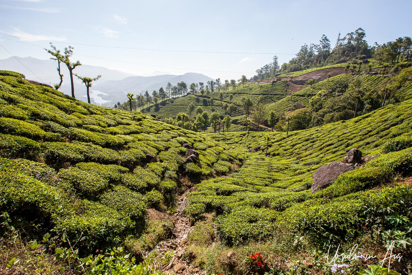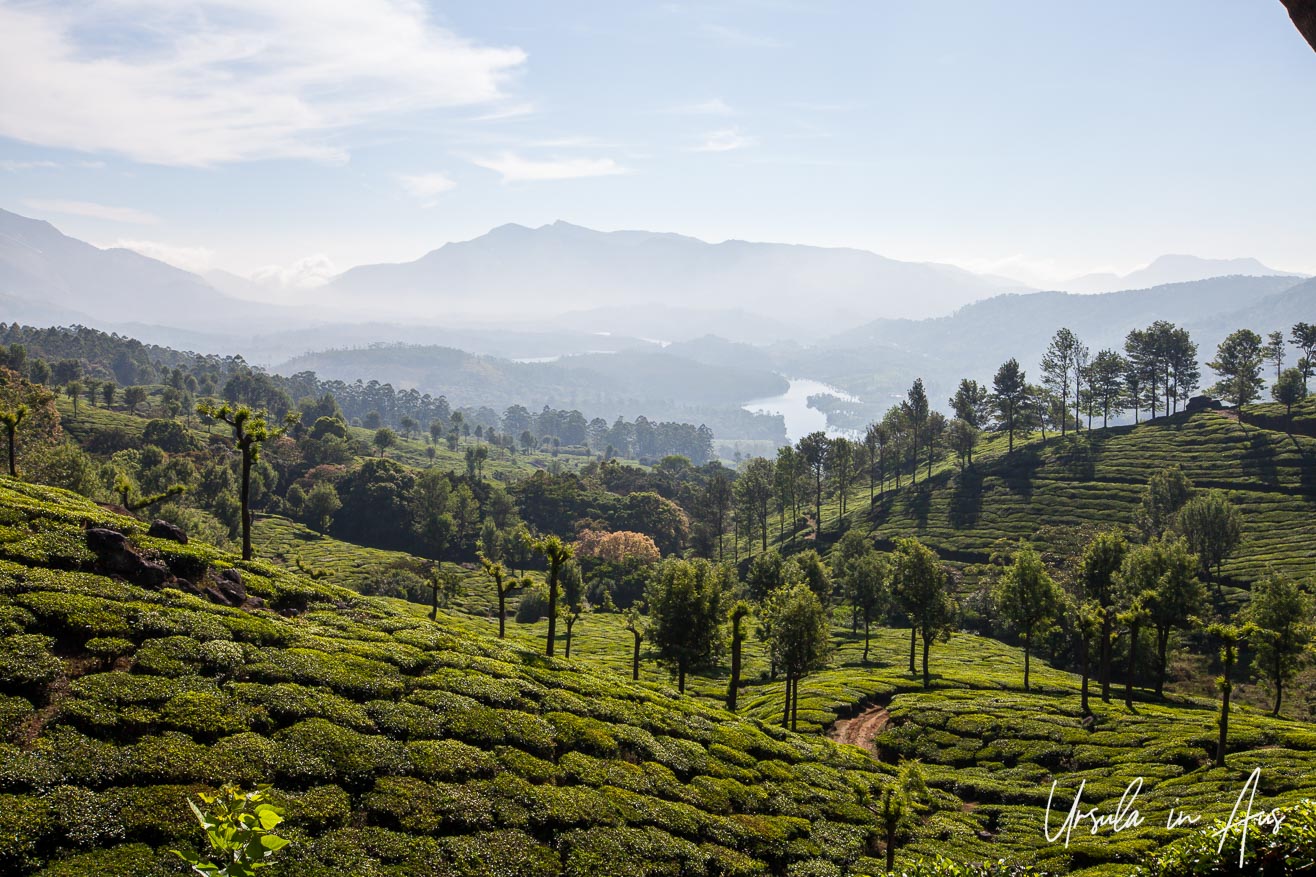 From high in a hill station in the Western Ghats, I have views over the extensive tea plantations, and down to the three rivers that give the town of Munnar, in India’s Kerala Province, its name.