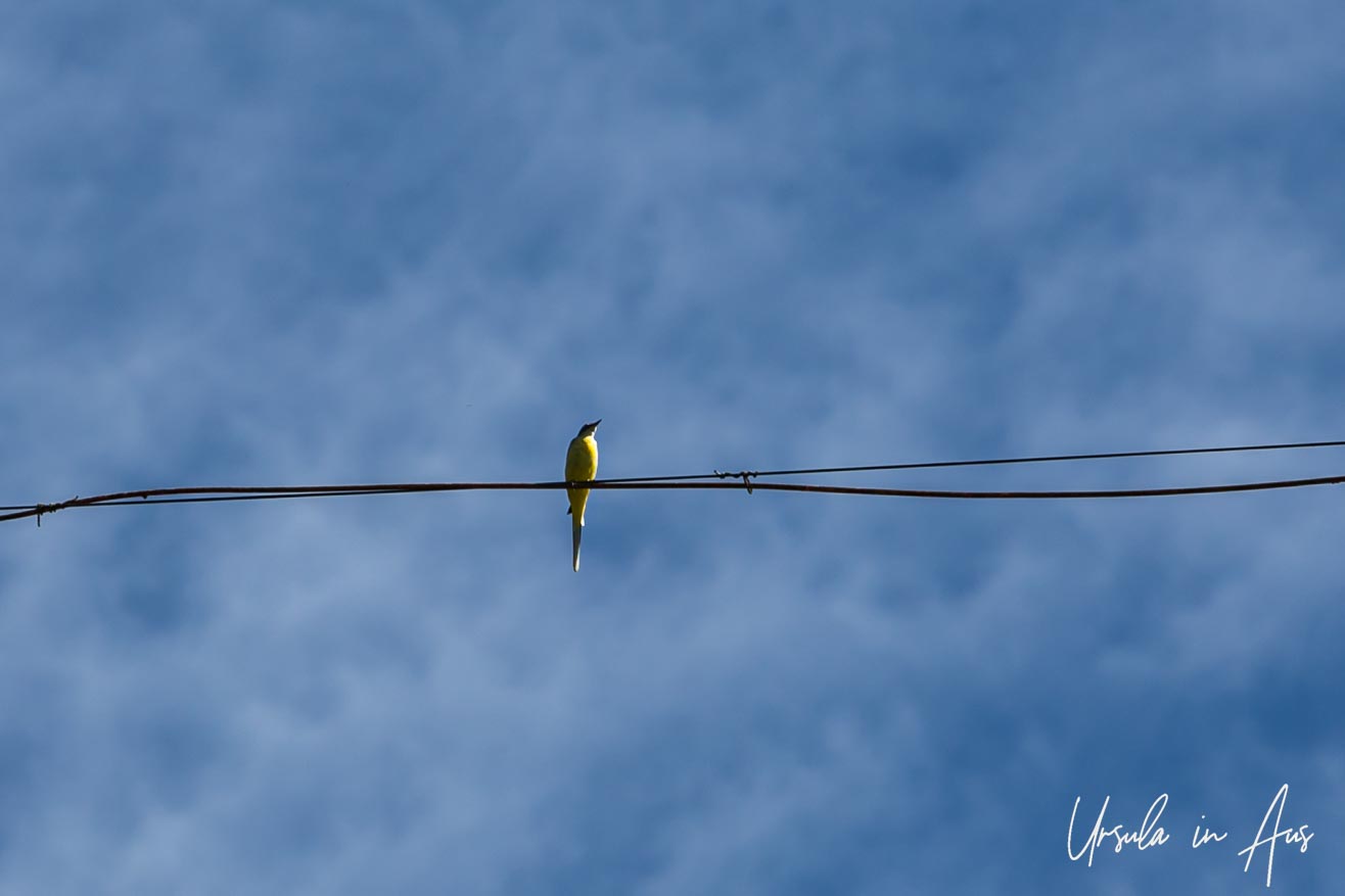 According to Google, this is a western yellow wagtail (Motacilla flava). To me, it is a reminder of Leonard Cohen.