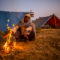 The campsite comes to life slowly, as dawn starts to lighten the horizon.