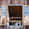 Inside the factory is dark, with light angling through the open windows.