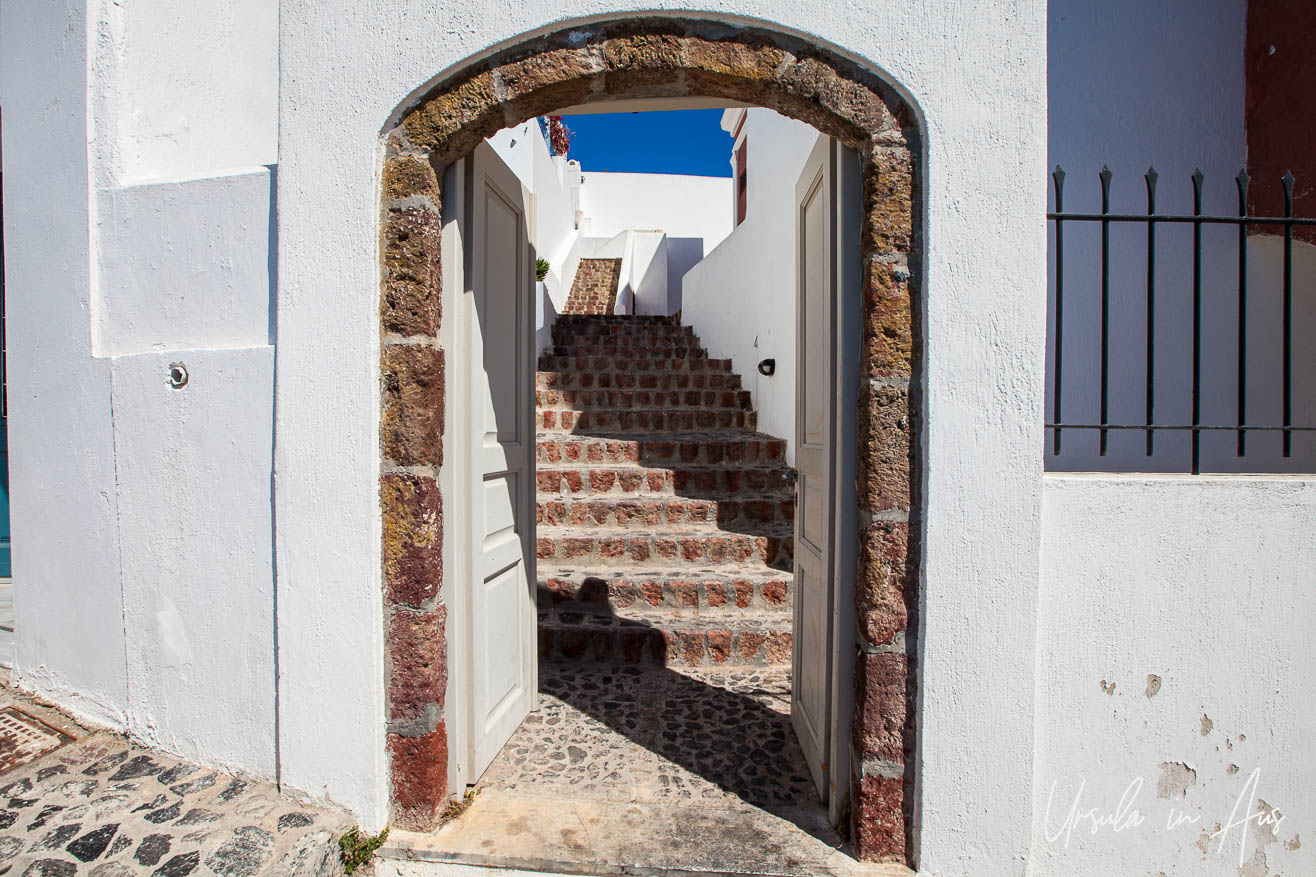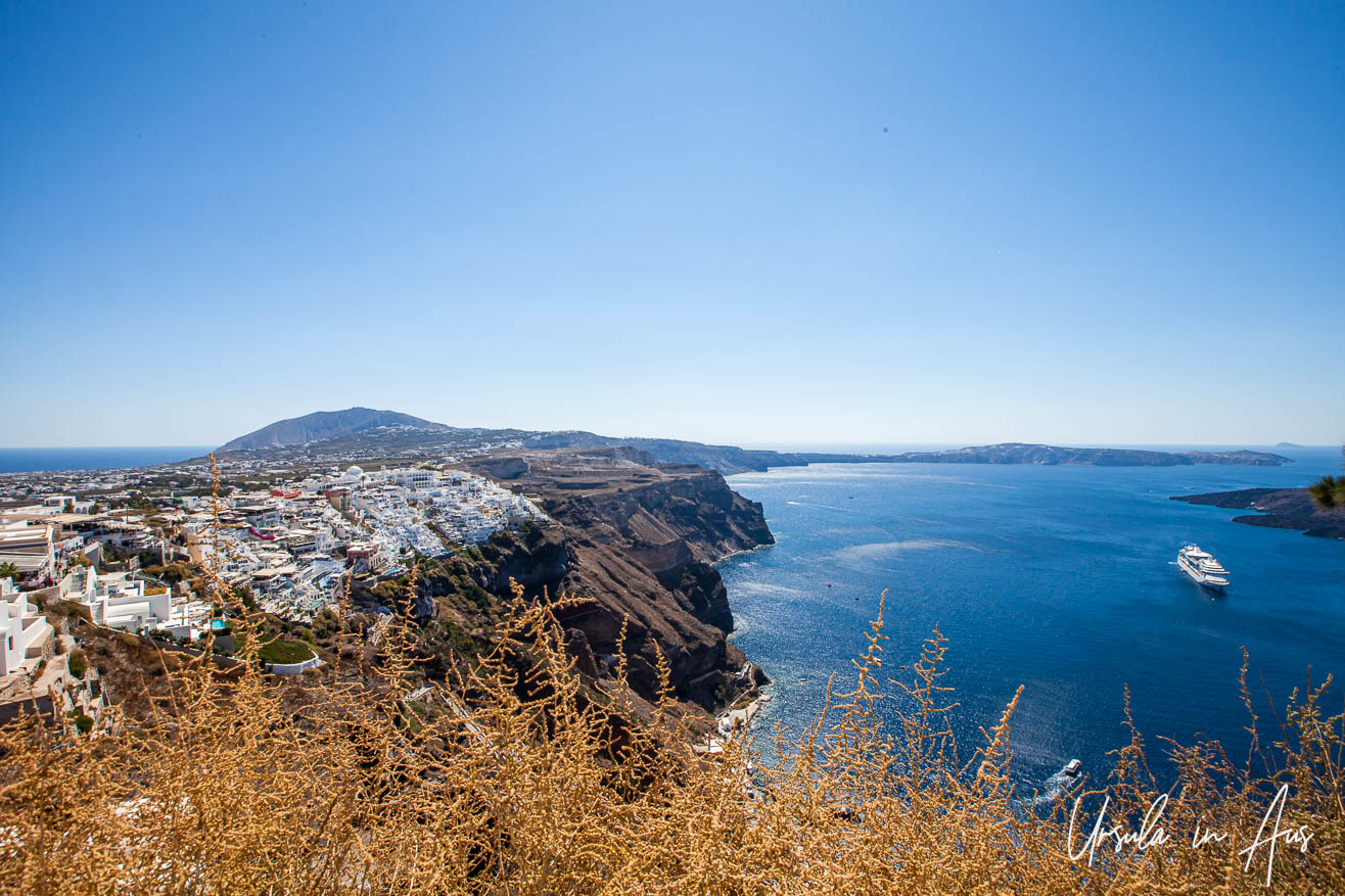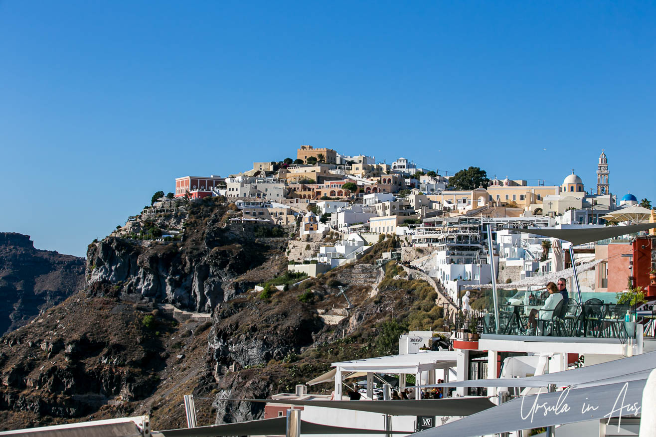 I was on a small group tour: we had been in Naxos for a few days (see: Life in a Marble Village) and travelled the short distance from Chora, Naxos, to Santorini by fast ferry in the morning. Our accommodation on the island was in Firá.