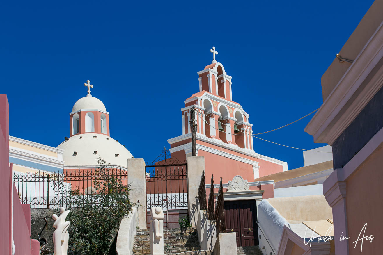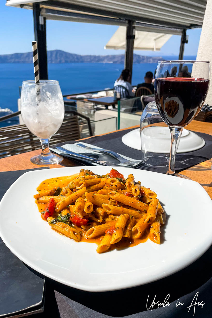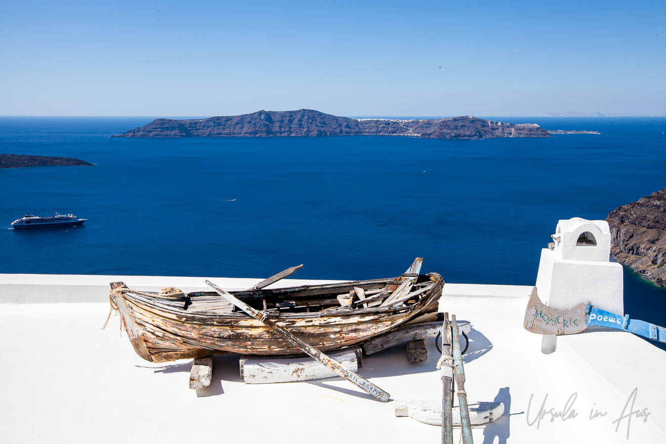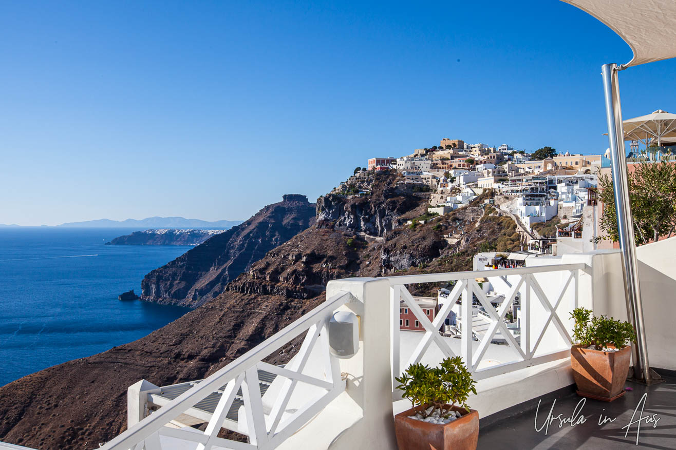 I was on a small group tour: we had been in Naxos for a few days (see: Life in a Marble Village) and travelled the short distance from Chora, Naxos, to Santorini by fast ferry in the morning. Our accommodation on the island was in Firá.