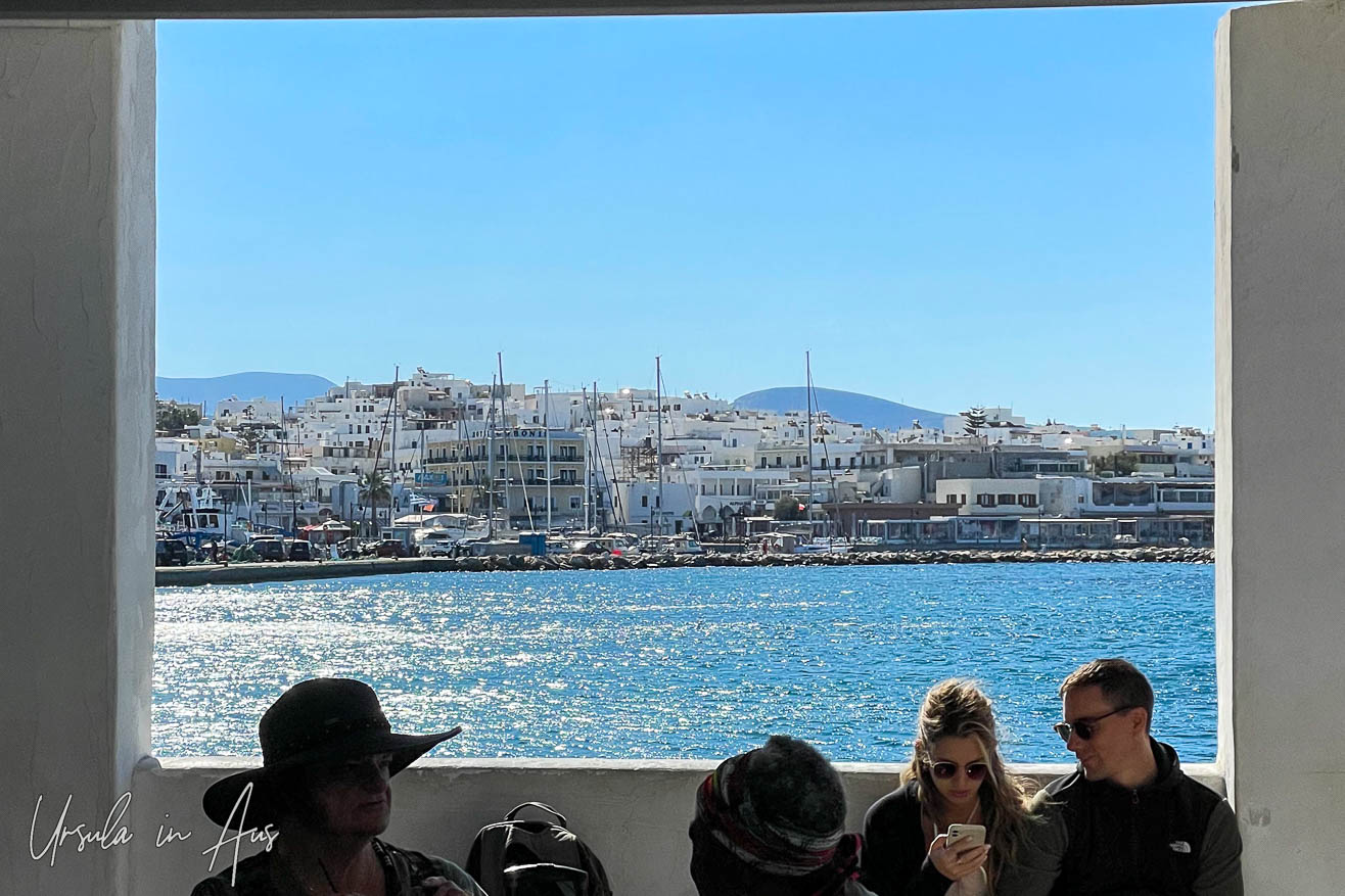 Our bags are packed, and we hurry up to wait in the Chora ferry port for our fast-ferry to Santorini. (iPhone12Pro)