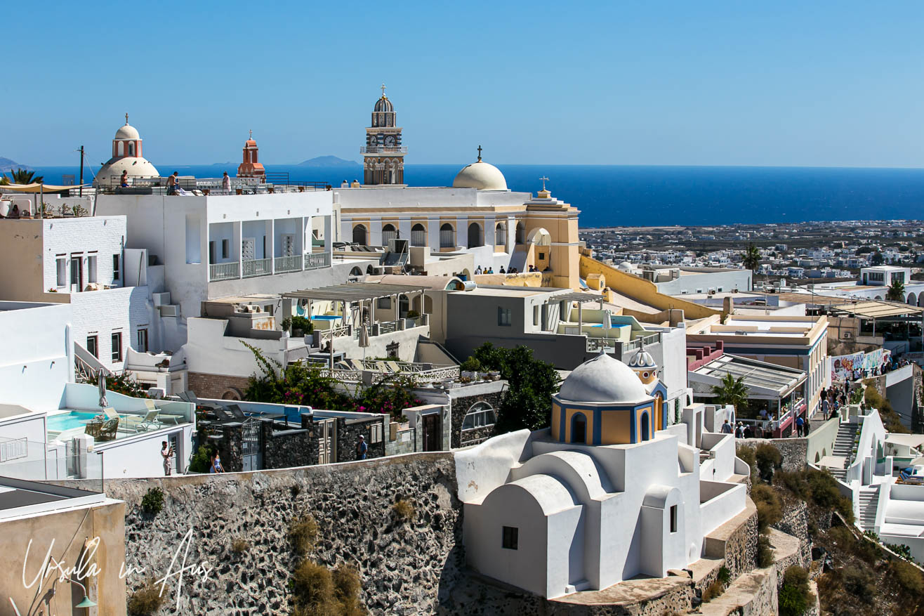 Everywhere you look in Fira, on Santorini, iconic white-walled and blue-domed Greek Orthodox churches stand against the blue skies and waters of the South Aegean Sea. I had waited a lifetime for this!