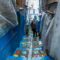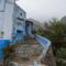 Stairs wander off in all directions, and every shade of blue is represented in the paint.