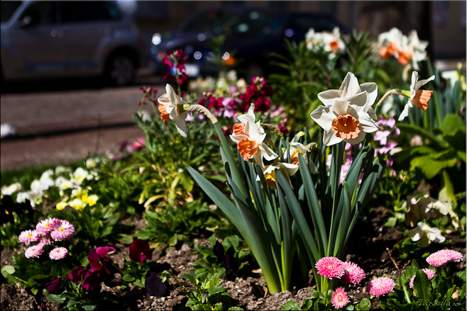 Tulips and Daffodils in the Street, Beaune, Bourgogne (Burgundy), 03/04/2011