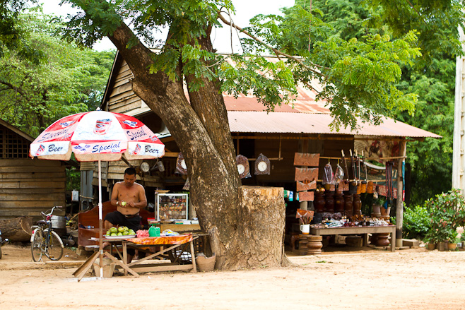 Our bus ride on the death-defying single-lane highway, which runs alongside barren fields with land-mine warning signs and gloriously green rice patties, was punctuated by stops. The first stop was at Spean Preah Toeus, the largest and most important of the 11 bridges remaining from the ancient Angkor Empire period. With 21 arches spanning the 86 meters across the Chhikreng River, this 12th Century laterite and sandstone structure (reinforced with modern concrete in the 1960’s) is a major part of an arterial network, and an excuse for a few shops and houses either end.