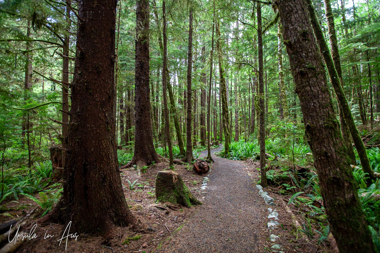 Haida Gwaii has many walking trails – but very few roads. I was based in the main town of Daajing Giids on the main northern landmass: Graham Island. Thanks to a local tourist map, I planned a program of hikes for myself that didn’t require camping to complete them, or a four-wheel drive to reach them. Even so, I’m not sure if the car-rental company would have approved the number of kilometres I drove on unsealed roads!