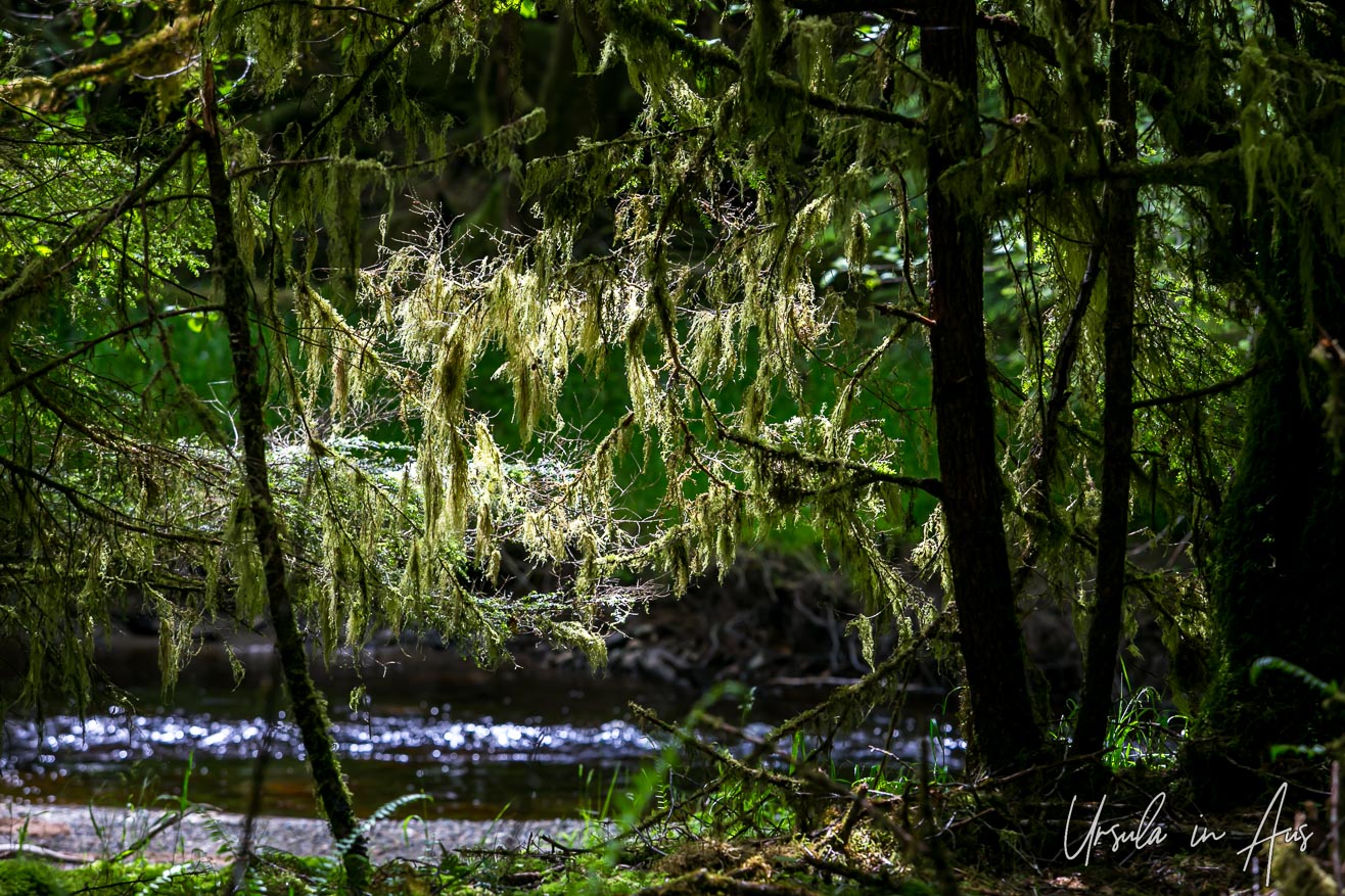 The afternoon sun shines through the old man’s beard (Alectoria sarmentosa) and the sound of the creek rings through the fresh air.