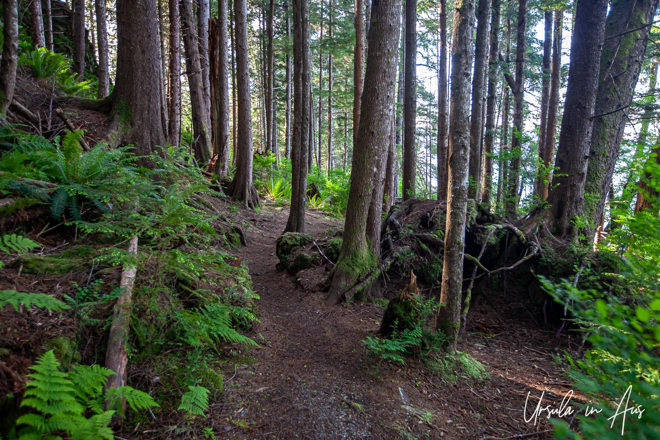 Tall trees on the Onward Point Trail, Moresby Island, Haida Gwaii BC Canada
