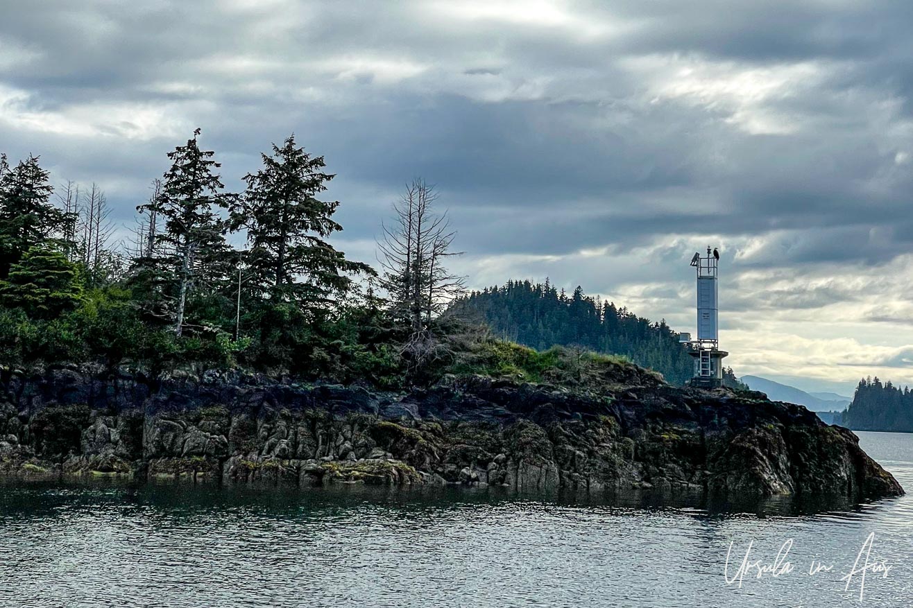 There is a cedar gazebo here, where you can sit and look over Skidegate Inlet. The site is known for birds, seals, and even whales; it was all quiet while I was there.