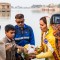 As the sun comes up, families – with the exception of unmarried girls – come together in the water to pour milk over the offerings and say prayers. In this family, the teenaged daughter is the one taking video.