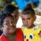 The older children rush to the jetty to wave us off as our tender leaves the island.