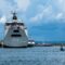 An Indonesian Navy Liquid Oil Support Ship (BCM) and a Traditional Outrigger Canoe
