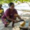 Food here is in the sea and in the trees. As I wander past the coconut trees, I find fish on corrugated iron sheeting, drying in the sun.