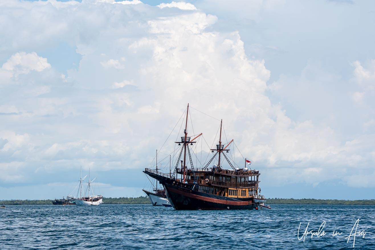 The next day, our tenders take us into the busy Sorong Harbour, where the ships range from traditional fishing vessels to oil tankers and elegant luxury tourist boats like these ones.
