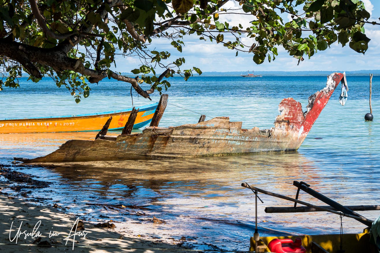 The flaking paint and rusty fittings on the traditional outrigger canoes in the waters around Pulau Soop speak to a simple, laid-back lifestyle.