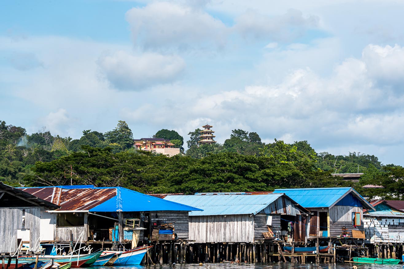 As our tender pulls away from the harbour, we have views over the ramshackle waterfront buildings, and the pagoda high on the hill.