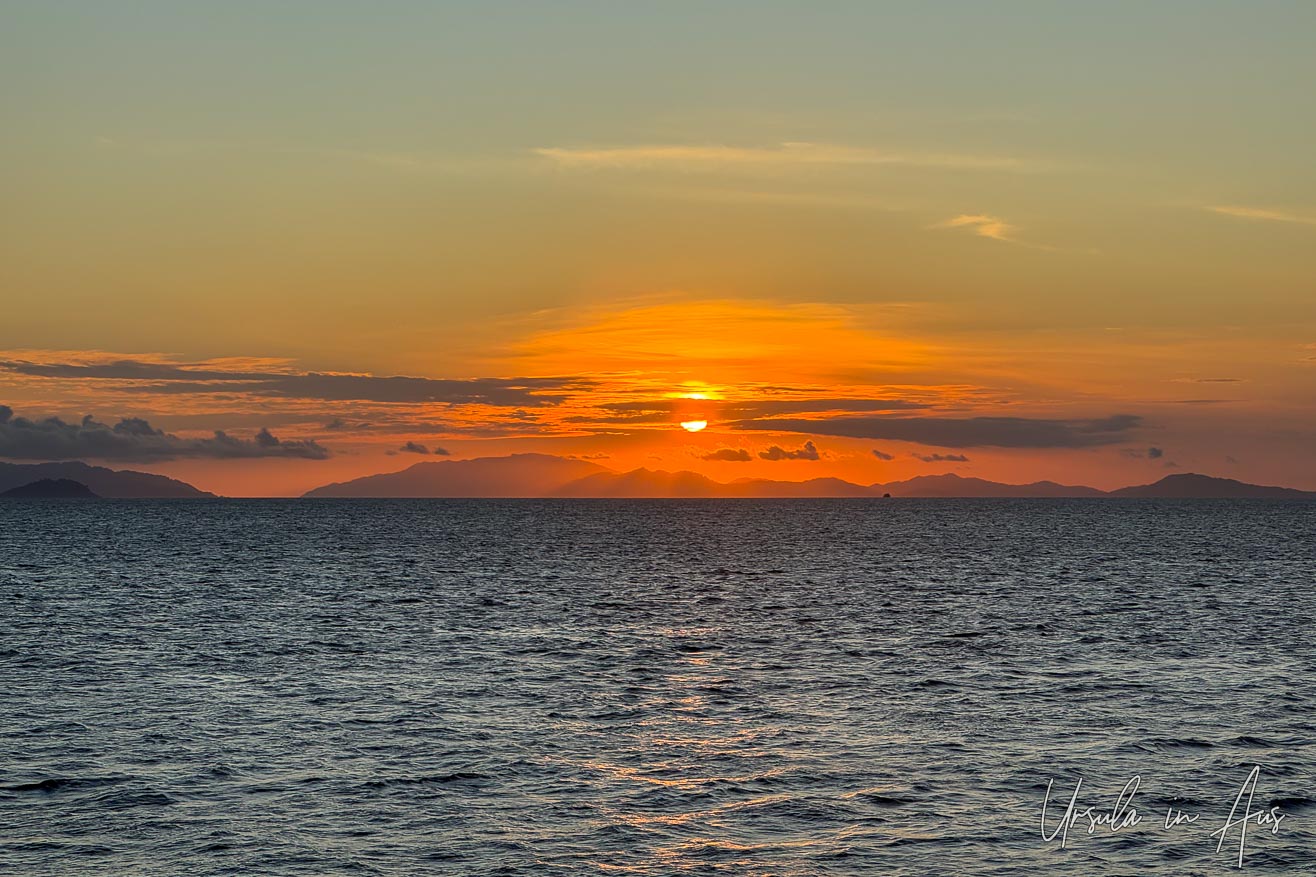 Night falls quickly in the tropics. Back on our ship, we are treated to beautiful orange skies. (iPhone15Pro)