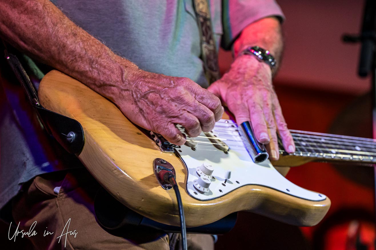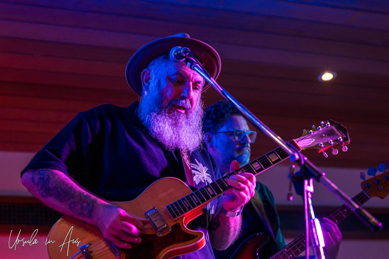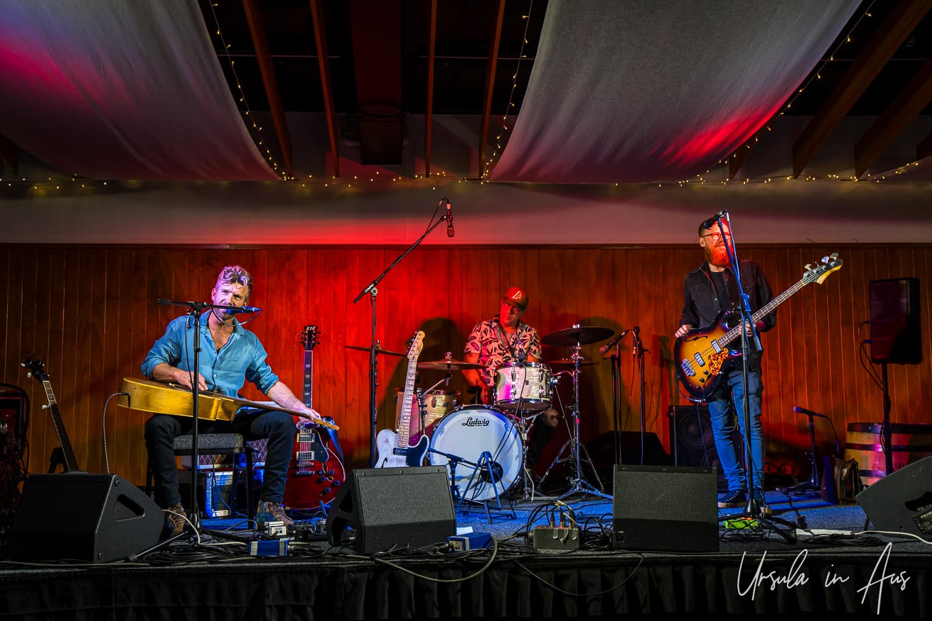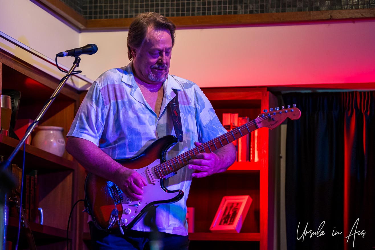 We walk across to the Lounge Bar, where one of Australia’s finest blues/rock guitarists, the well-known Mal Eastick, is leading his new line-up.