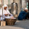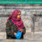 Outside the mosque, old women sell bags of pigeon-food.