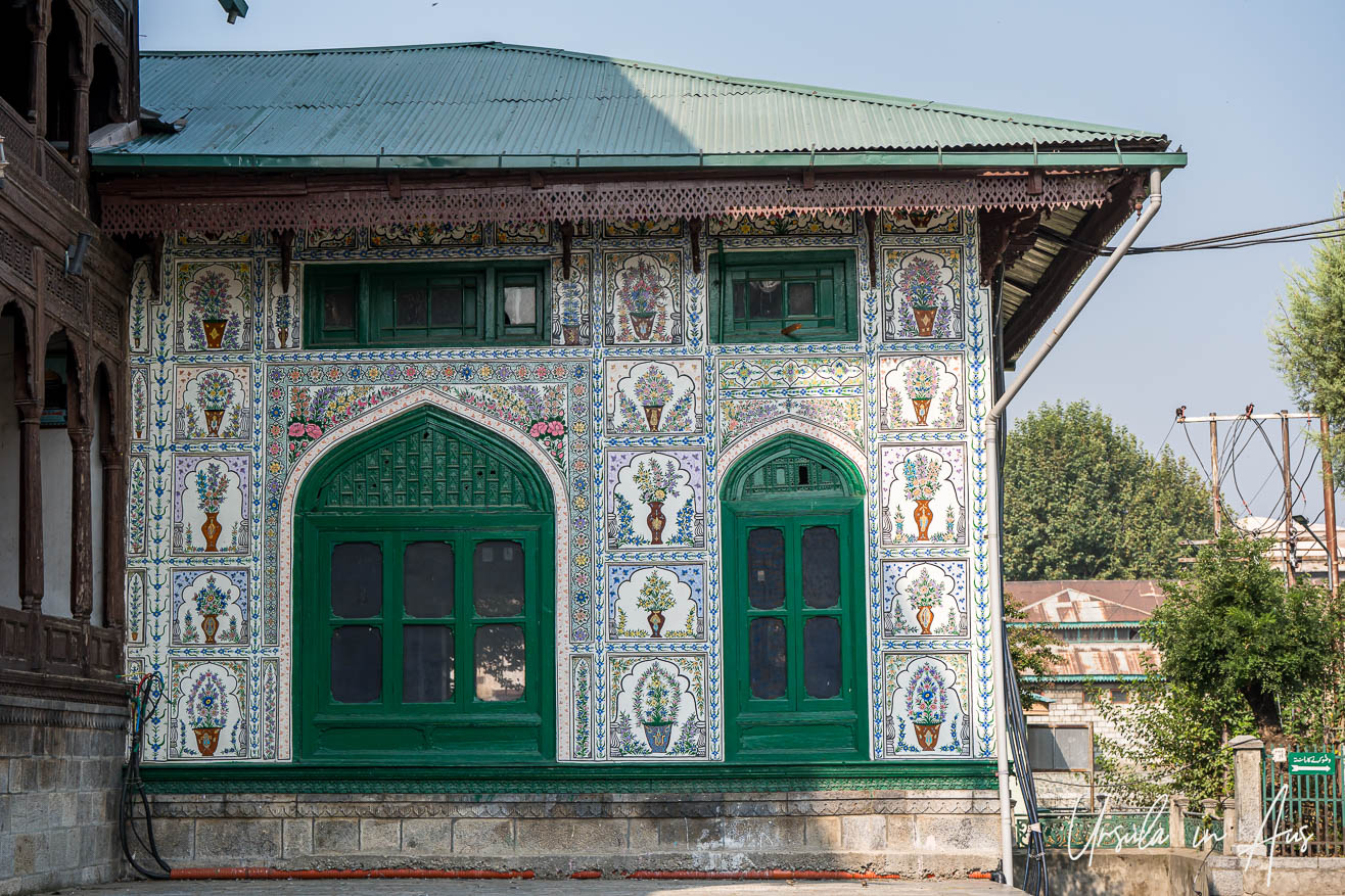 The original building was destroyed by a fire in 1480, so what we see today mostly dates to 1731 – having been rebuilt again after yet another fire. Called Srinagar’s most beautiful mosque, it was reconstructed in the traditional manner, without any nails. All the surfaces, inside and out, are covered in papier-mâché (paper mache) reliefs and khatamband, elaborately intricate hand-crafted wooden pieces held together purely by their joinery – and all are wonderfully painted in colourful patterns.