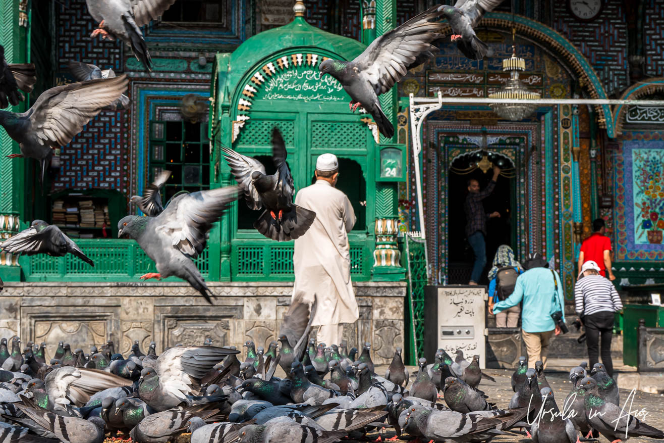 Many of the visitors to the mosque take time to feed the pigeons.