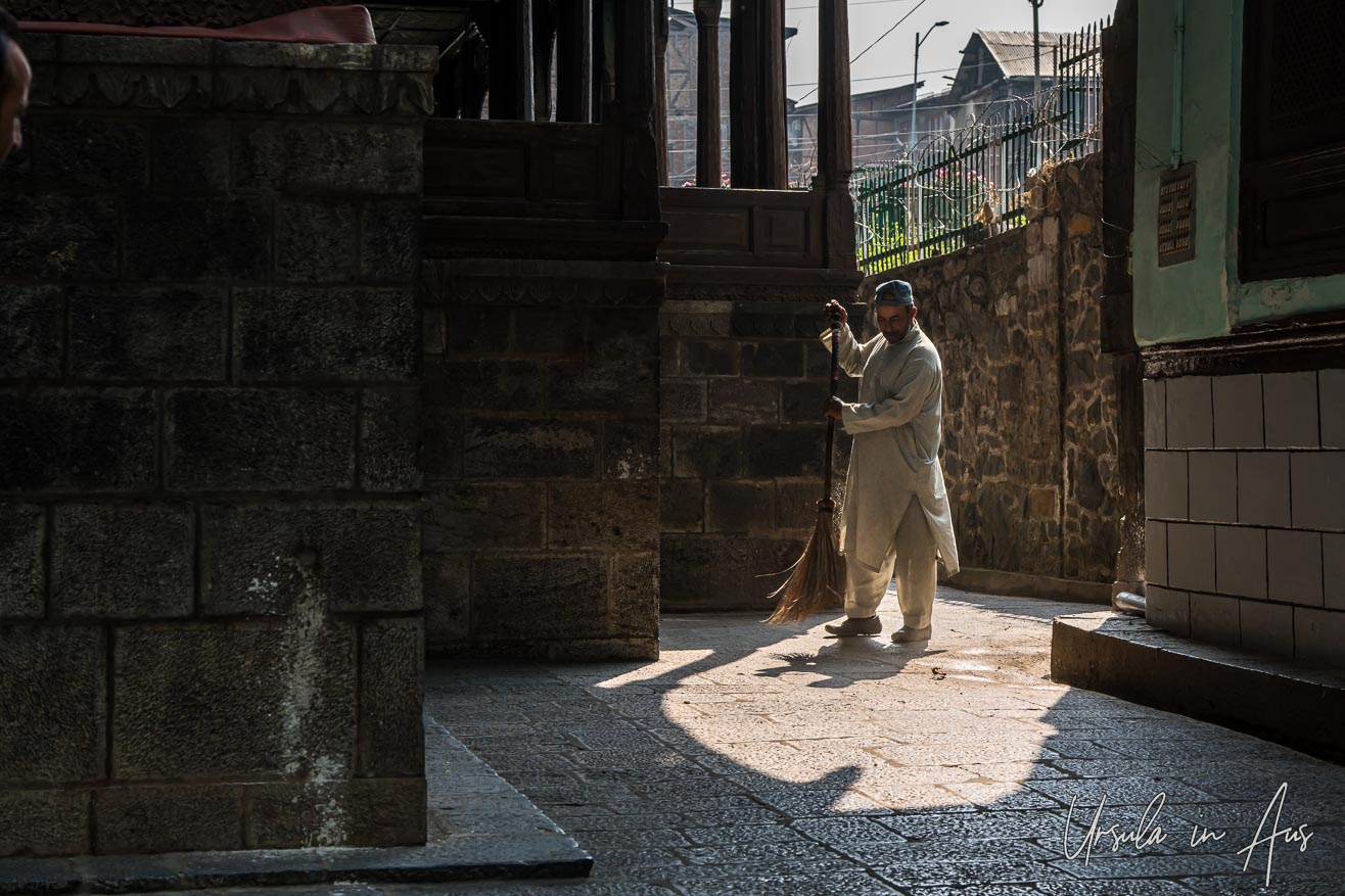 Beyond the old wooden mosque, everyday life continues in the old city streets of Srinagar.