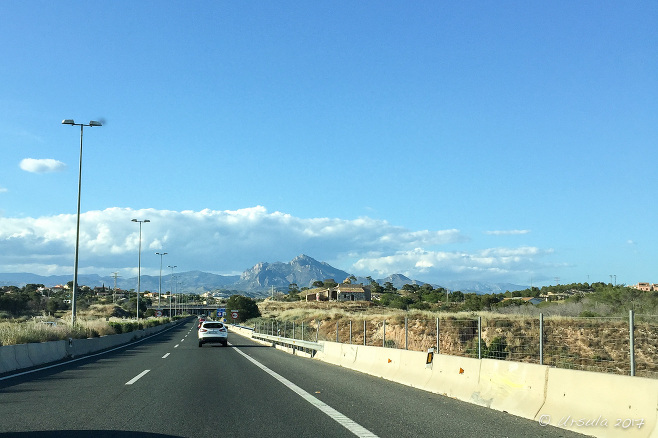My husband and I were using up expiring timeshare points in the planned resort town of Platja de l’Albir (also called Albir, El Albir or L’Albir) – part of the Valencian town of L’Alfàs del Pi. It was mid-May, before the main tourist season hits, so we escaped the worst of the crowds, while still being blessed with magnificent weather. The mild Mediterranean climate treated us to dry sunny days that were just right for pleasurable walking (see: Walking to El Faro), boat-tripping (see: Mediterranean Blues), and exploring (see: Castillo de Santa Bárbara). Most days we left our rental car parked and either strolled around our local beachfront, or made use of the easy-to-navigate public busses.