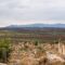Outside the old boundary of the site, patterned fields stretch across the richly fertile plane to Mount Zerhoun on the horizon.