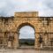 The Triumphal Arch of Volubilis was built in marble in 217 CE as tribute to Emperor Caracalla and his mother. Largely destroyed by an 18th-century earthquake, it was restored some time in the early 1930s. The inscription at the top was reconstructed from the fragments of stone found in the viscinity.