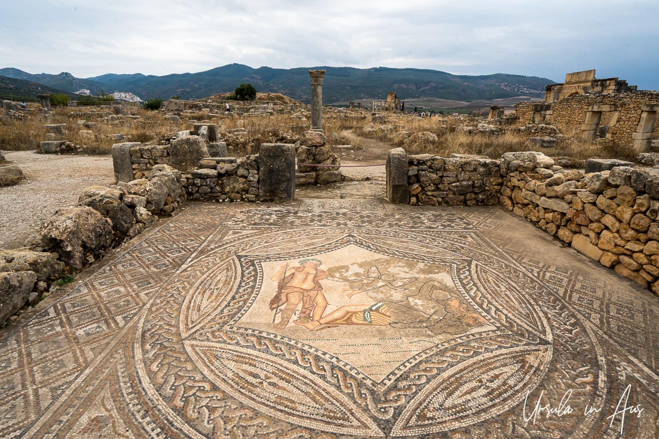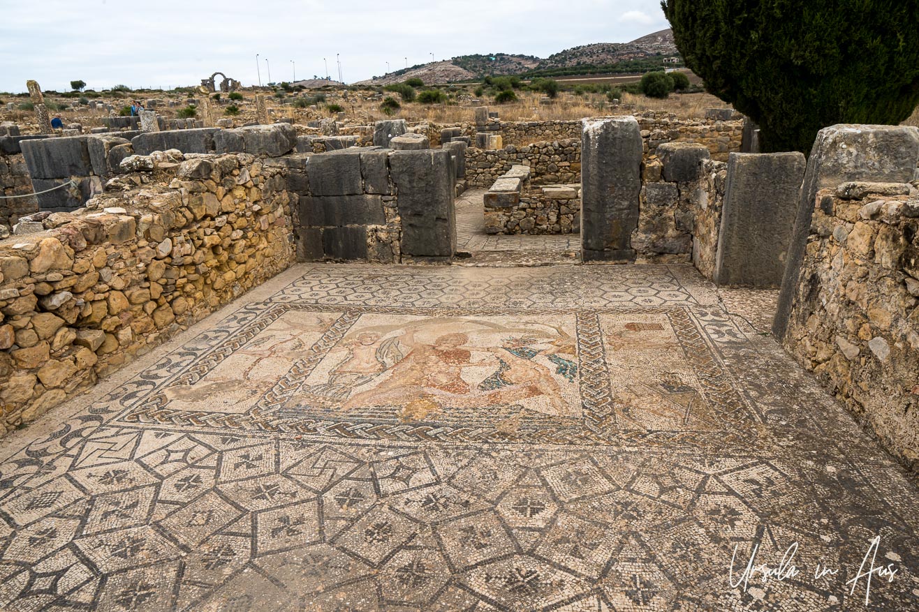 The mosaic floors that have been uncovered in the mansions of Volubilis are quite extraordinary. This one in the House of Venus – once the home of King Juba II – dates to the 3rd century, and tells the story of how Hercules’ companion Hylas was lured away by two beautiful nymphs.