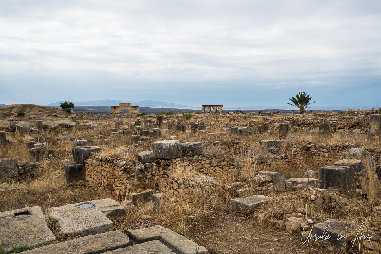 Under the Romans, the city was expanded considerably over time, and came to cover roughly 42 hectares (100 acres) surrounded by 2.6 km (1.6 mi) of walls. Most of the city’s public buildings were constructed in the original part of the city, while the grand houses for which Volubilis is famous are in the newer part. The Arch of Caracalla marks the point at which the old and new cities merge.