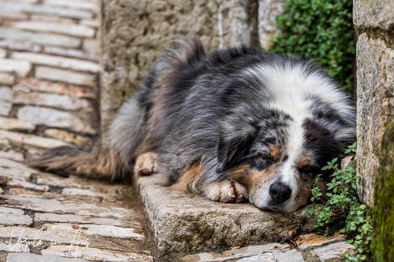 As we walk down from the carpark, we have views over the karst cliffs that were formed during the Jurassic period, and of the medieval village that takes strategic advantage of its position over the river and surrounding fields.