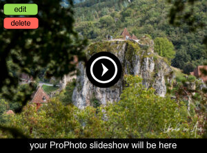 And, we look back at the Rock of La Popie. You can just see people who climbed up the promontory – as we had – for views over the village and the valley.
