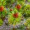 Out of the shadows of the forest it is easier to get a good look at the different conifers that grow here. Male cones (microstrobili) cluster on the new shoots of a lodgepole pine.