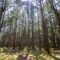 Back in the woods, the afternoon sun is slanting through the tall trees.