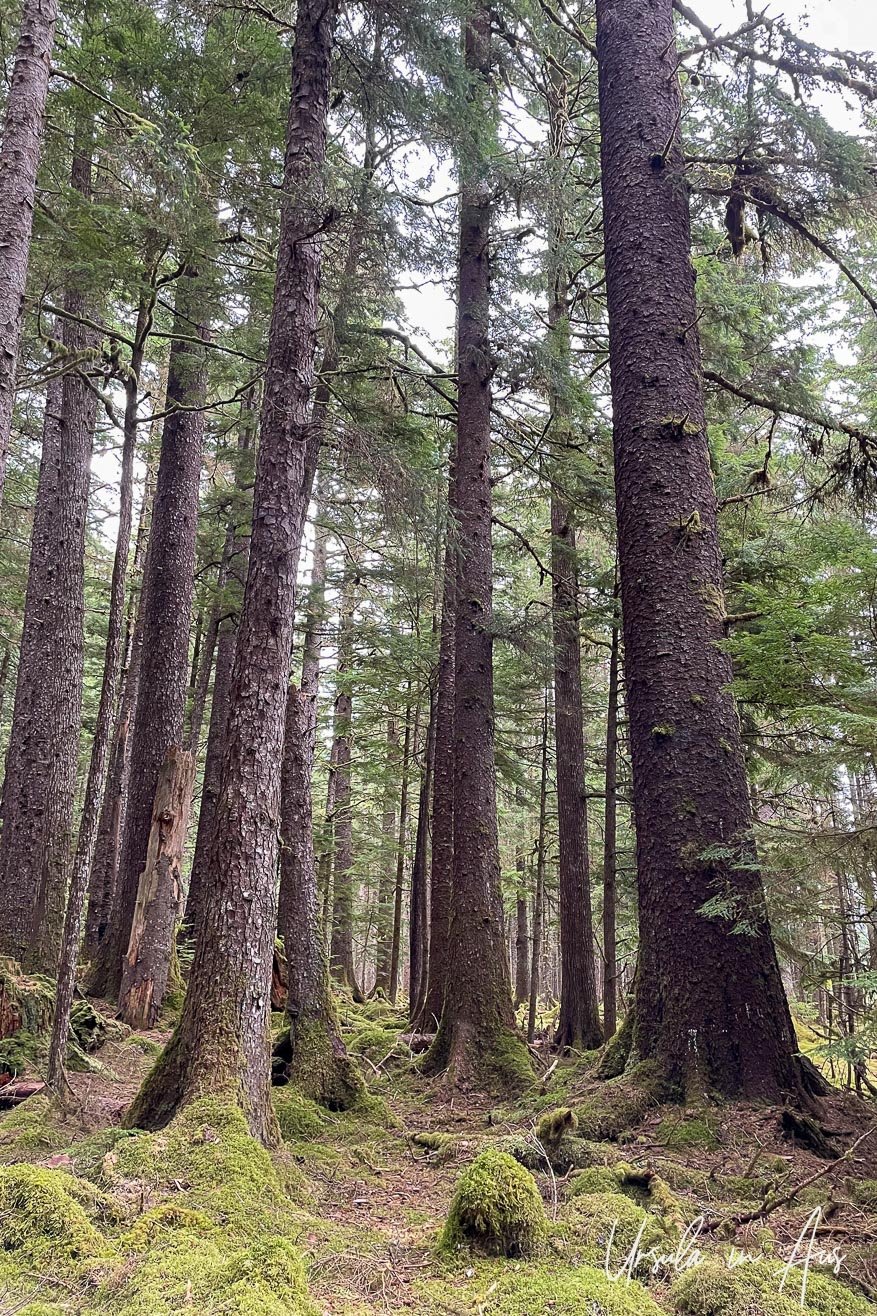 These old forests are home to tall sitka spruce, western hemlock, and western red cedar.
