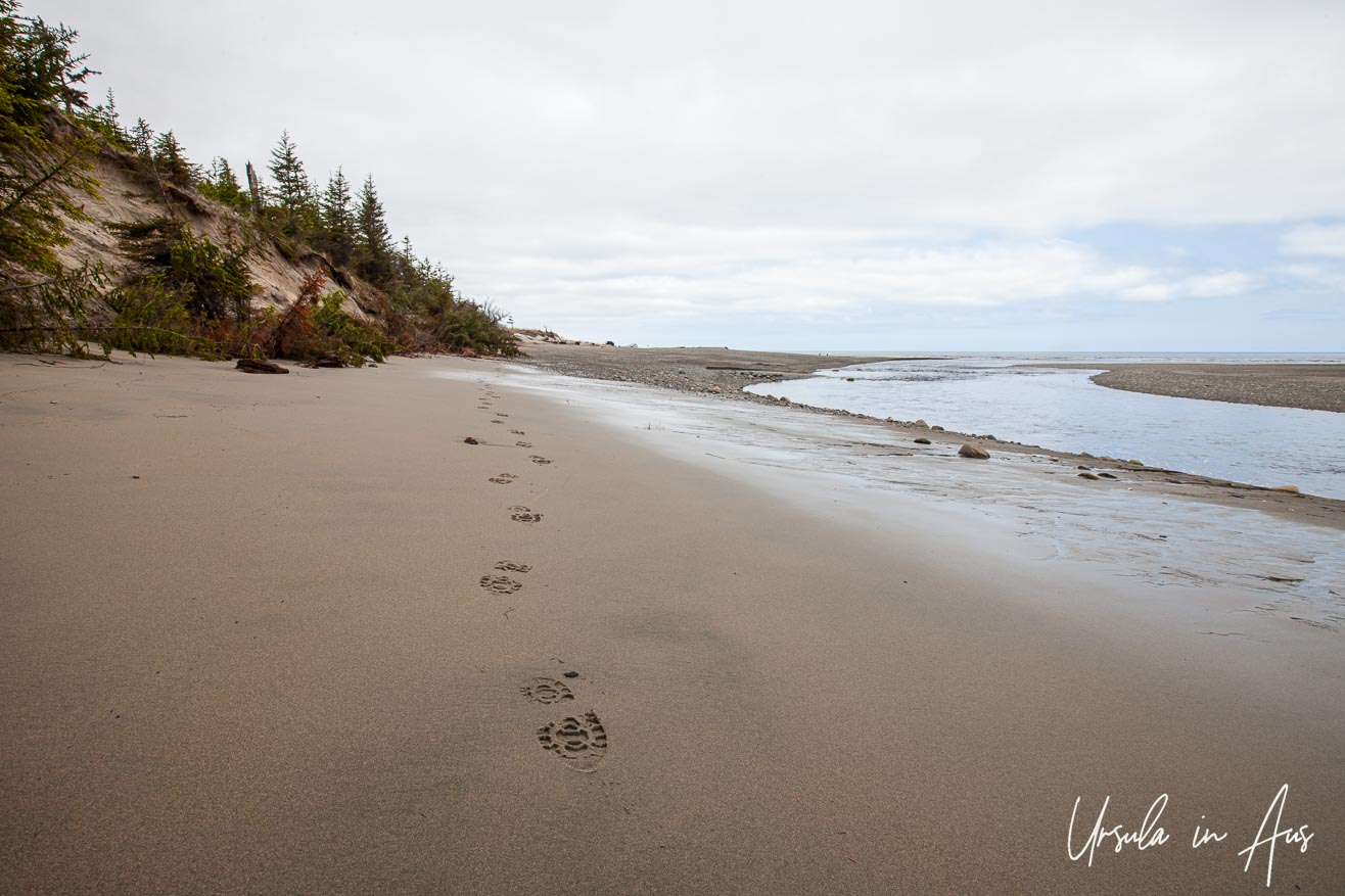 After spending an ‘easy day’ the day before, near my base in what was then-called Queen Charlotte (see: Fresh Food and Walking Trails), I drove north to the Tlell River Picnic Park in Naikoon Provincial Park where the walk starts.